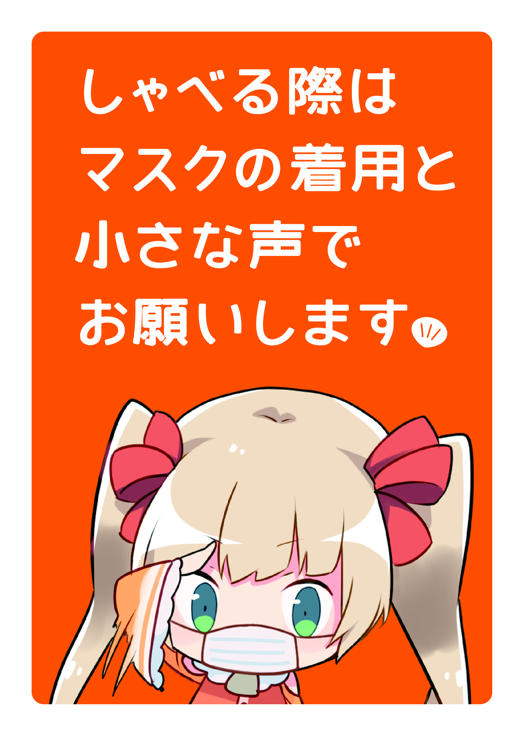 くはないな_喋る際はマスク+小さい声でお願いしますポスター バージョン ダウンロード 3357 ファイルサイズ 1.93 MB ファイル数 1 投稿日 2021年1月18日 最終更新日時 2021年1月19日 ダウンロード 説明 \シェアしてね♪/
